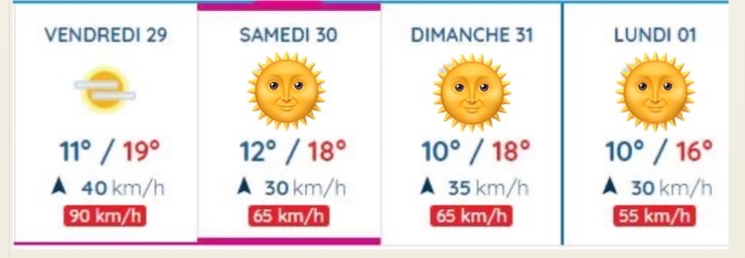 pas trop froid, mais fort vent du sud, et risque d'orage et pluie.