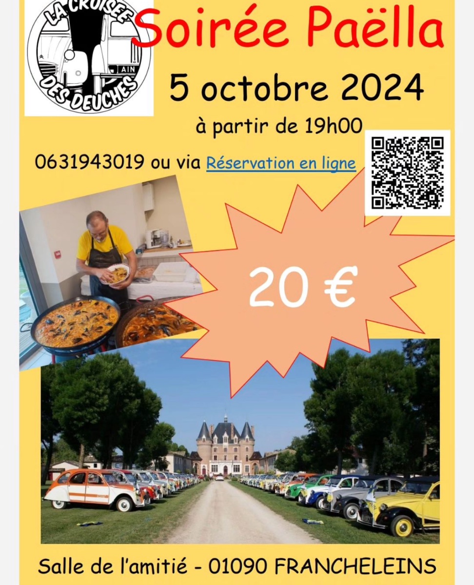 Nos amis de la croisée des deuches font une soirée Paella le 05/10/24 à Francheleins (01)