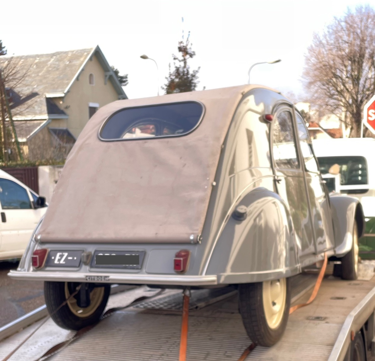 Ce matin, en attendant que mon mécano / carrossier charge ma voiture avec son matériel, j'ai pris 2 photos d'une 2CV "en cours" de restauration: