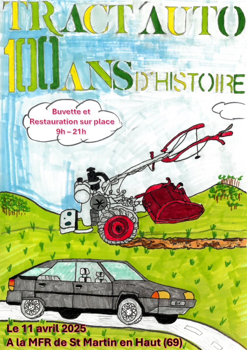 Saint-Martin-en-Haut, le 11 avril 2025 — La Maison Familiale Rurale (MFR) de Saint-Martin-en-Haut a le plaisir de vous inviter à son événement exceptionnel : Tract’auto, 100 Ans d’Histoire (1925-2025). Cette exposition, conçue et organisée par nos apprentis dans le cadre de leur épreuve de réalisation d’un chef-d’œuvre, retrace un siècle d’évolution de l’automobile et du machinisme agricole.
