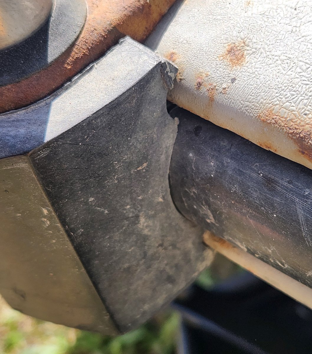 Les choses se compliquent ! Voici deux photos, une d'une Azam (ou le jonc caoutchouc n'est pas coupé) et une d'une deuch équipée d'un pare-chocs d'Azam, ou le joint est coupé. Le mystère perdure ....