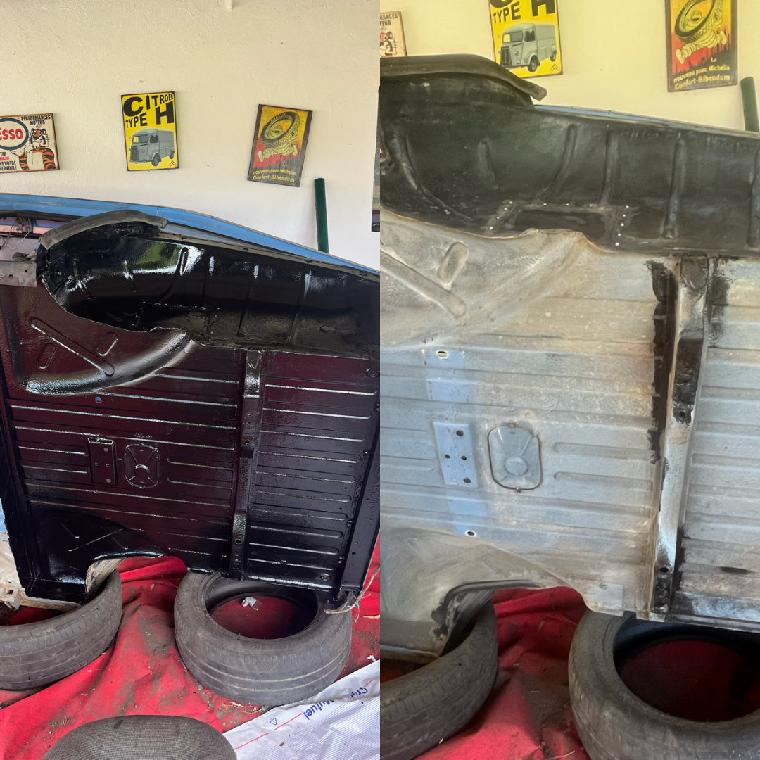 Décapage et mise en peinture du réservoir et dessous de caisse et intérieur d’aile