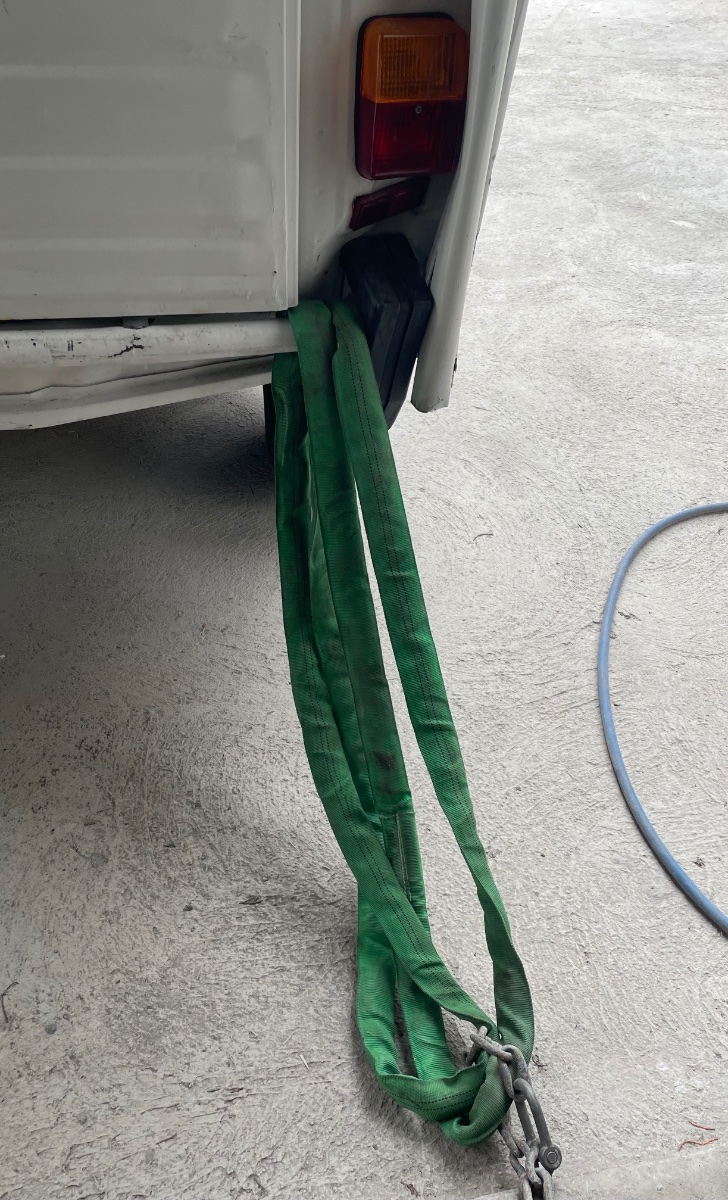 Il a un peu retouché la chose à l’aide d’une sangle et … d’un sapin