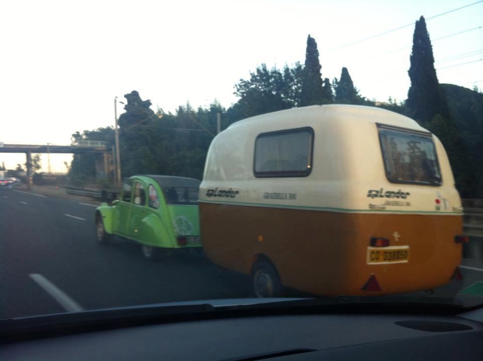 et derrière une 2cv avec une caravane rapido