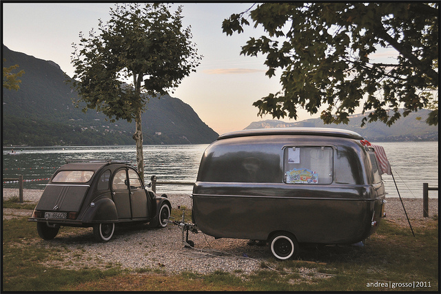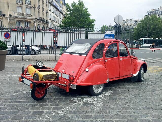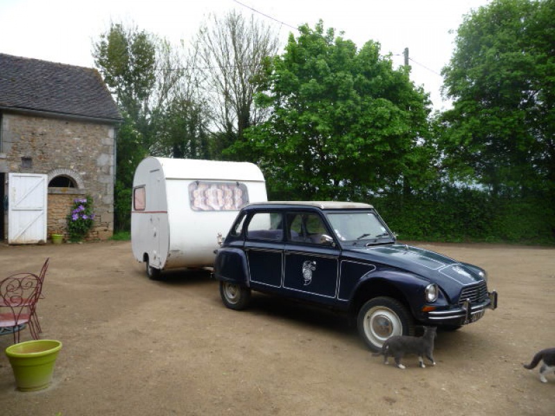 et derrière une 2cv avec une caravane rapido