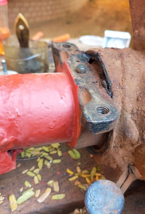 Pour sortir l'écrou récalcitrant, il l'a cassé à grand coup de burin... J'espère que le ressort sera de la bonne longueur.