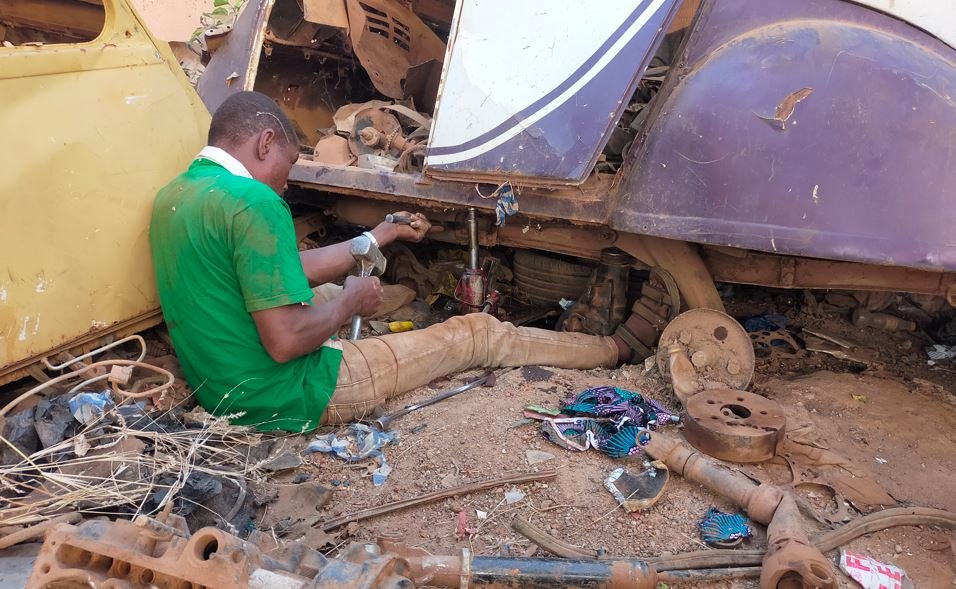 Je n'ai pas facebook, donc je n'ai pas vu le poste d'Etienne. Adama était garagiste 2CV. et depuis un accident de mobylette, il est paralysé et donc de travaille plus.