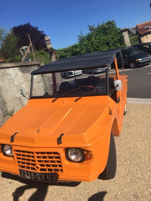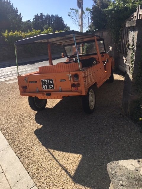 la même journée, ma femme a vu une belle méhari orange qu'elle a pris en photo, moi aussi, elle est en photo un peu plus haut et regardant un peu plus près, c'est deux méhari différentes, je vous mettrais la deuxième un peu plus tard ...Il y a plein de bicylindre dans ce pays ou il y a moins de 10habitants au km2...