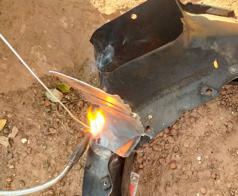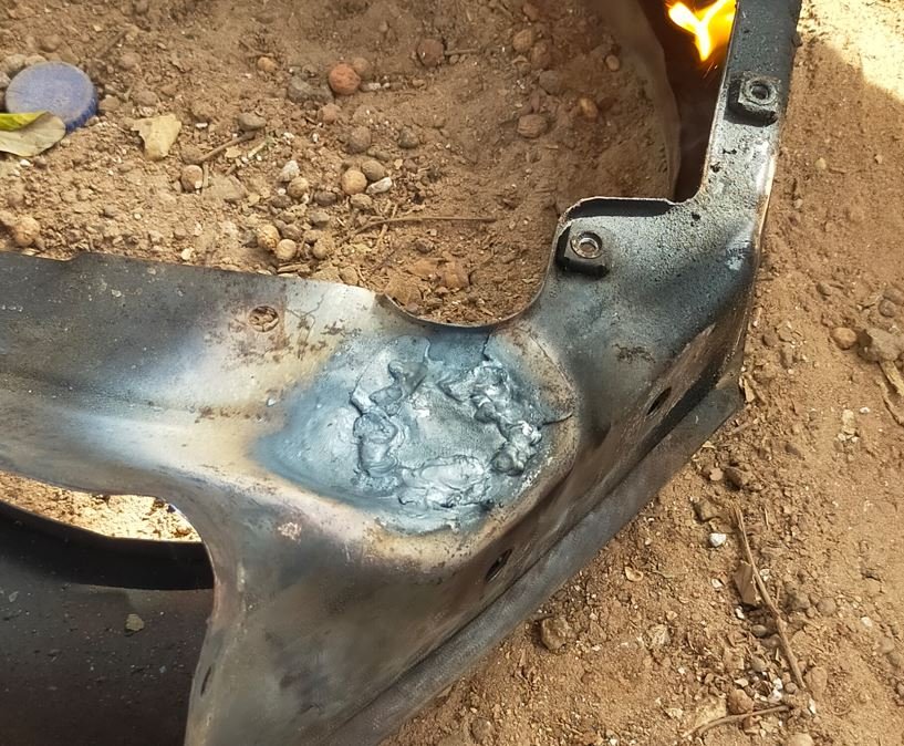 Puis reprise de la tôles inférieur du pot sous boite (bête à corne):
