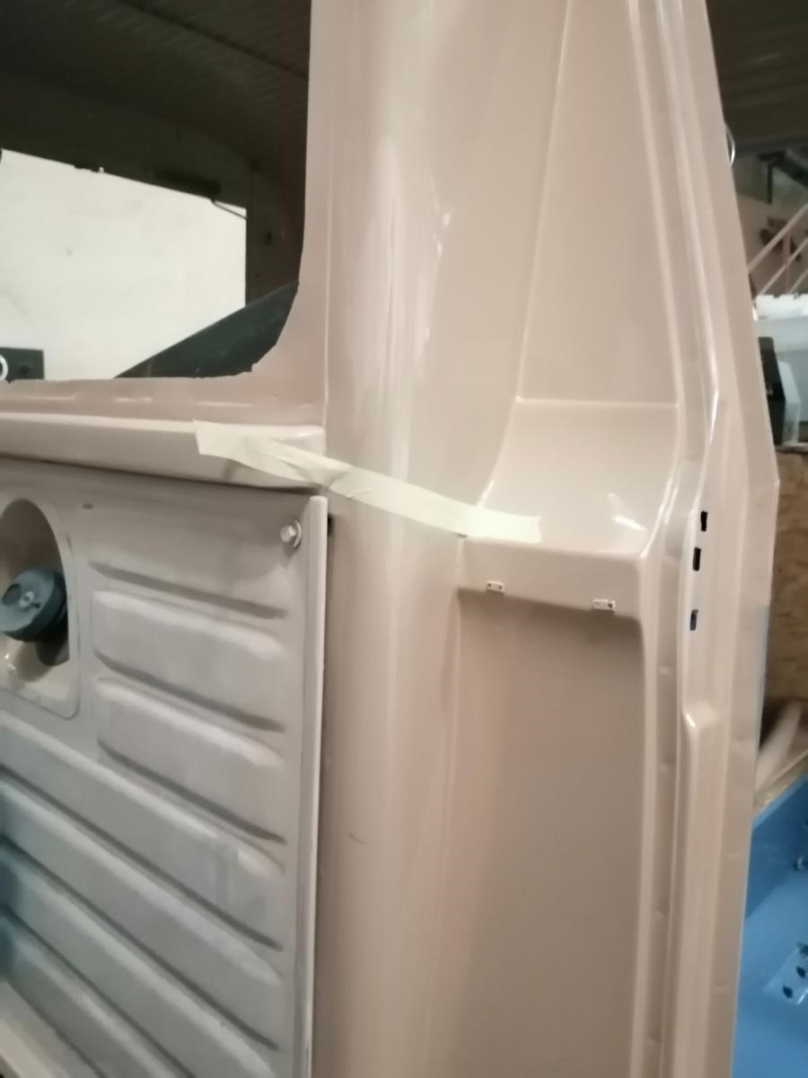 Et là je m'aperçois que la baguette de la porte AV est bien plus basse que l'"embouti" de la coque AR (sous la fenêtre) obligeant à un raccord en biais qui ne n'emballe pas trop.