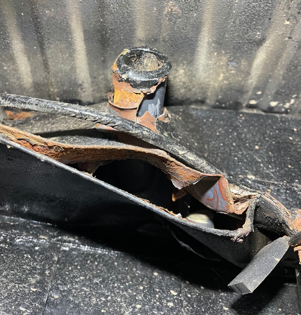 c'est surprenant de voir que le tube à l'intérieur du caisson est parfaitement bien peint, sans rouille. Et de voir l'état de rouille de l'intérieur du caisson.