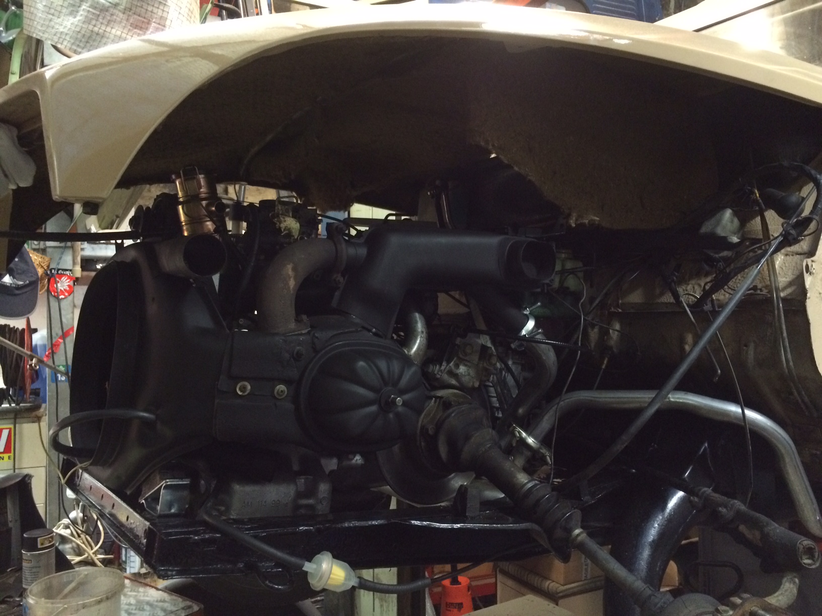 Sans oublier un très gros nettoyage, sablage des toles du moteur et un petit coup de peinture haute température, histoire de faire propre (merci les copains !!).