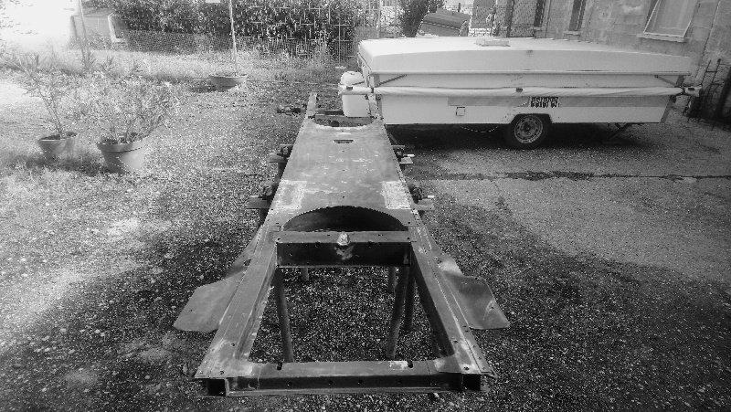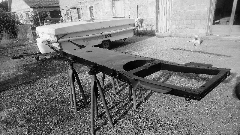 Puis on a posé la caisse sur tréteaux métalliques et ma foi il semblerait qu'elle soit déjà allégée de son Plancher Transversal !