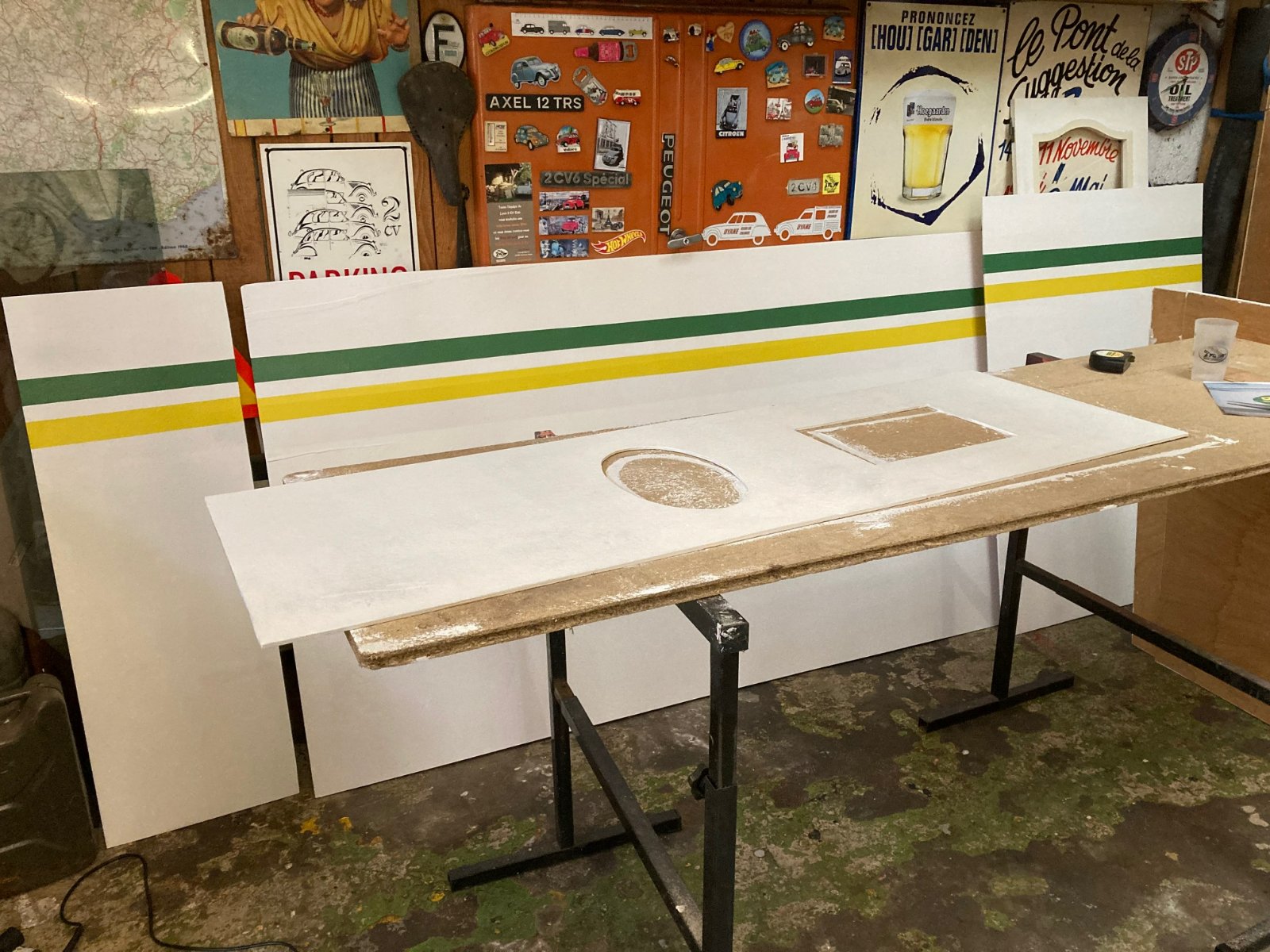 Et puis des panneaux blancs pour recouvrir les "palettes" et la banque.