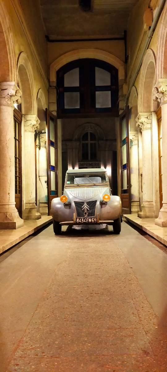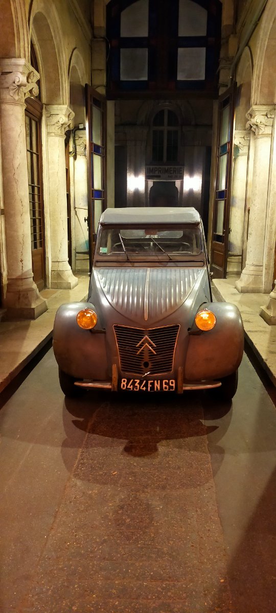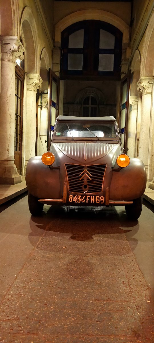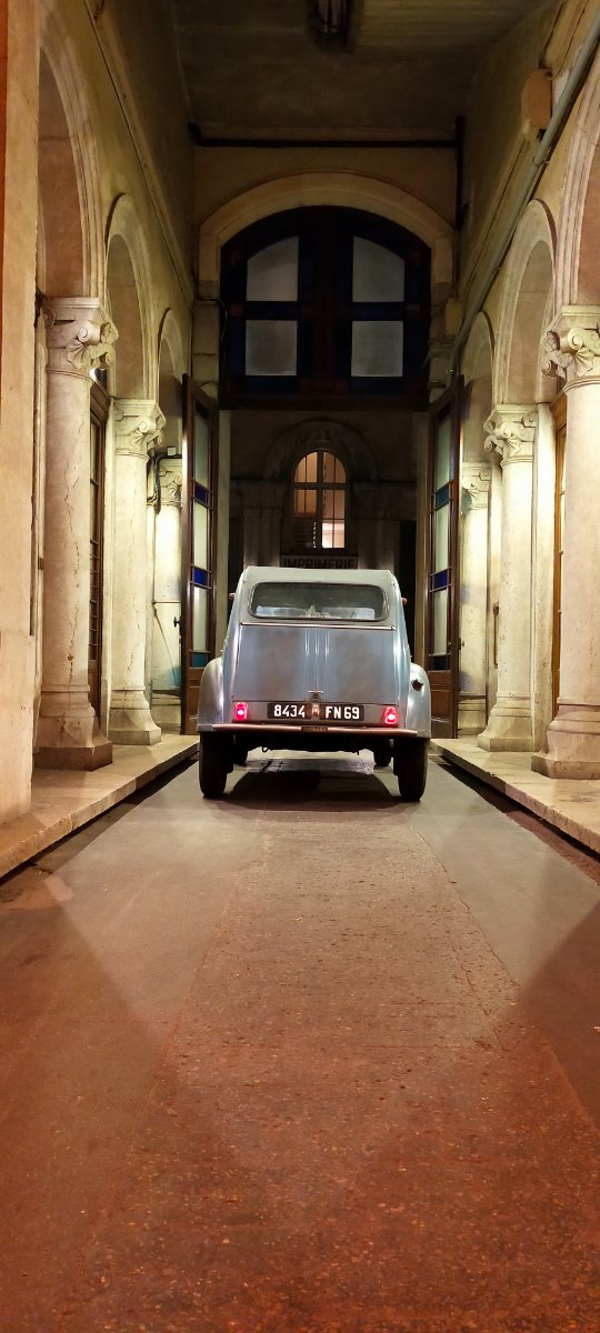 La photo de Jacques de retour d'Espagne dans l'entrée de son garage me plaît beaucoup. La Le Patron pour une affiche pour notre rencontre de Pâques n'est peut être pas suffisamment parlente, on pourrait refaire la même photo mais avec une deuche ?
