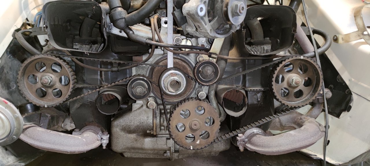 Et voilà la distribution est faite, ainsi que la courroie d'alterno. Les anciennes courroies n'étaient pas craquées, mais elles avaient l'âge d'être changées.