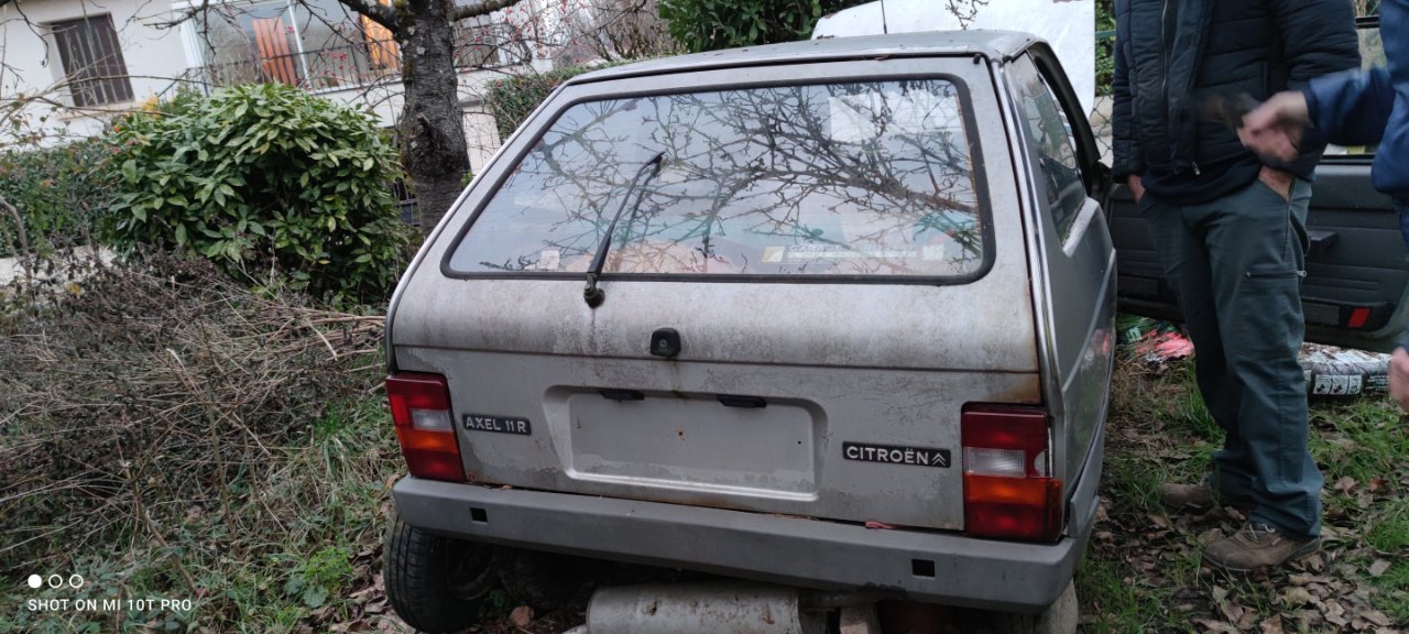 Bientôt une autre Axel va lui tenir compagnie. Il s'agit d'une 11R de 86 Gris Perlé EVE. Hélas il n'est pas prévu qu'elle reprenne la route. Elle servira de donneuse de pièces mécaniques et carrosserie. Tout sera démonté jusqu'à l'os, et même gratter l'os car des éléments soudés vont être découpés et soigneusement gardés.