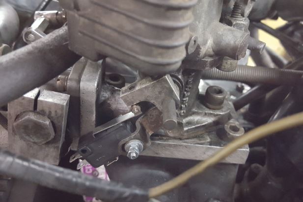 Par contre, il a fallu adapter la patte du cable d'accélérateur. (une que j'avais que j'ai tordu pour être en face) et aussi changer la position du ressort de rappel.