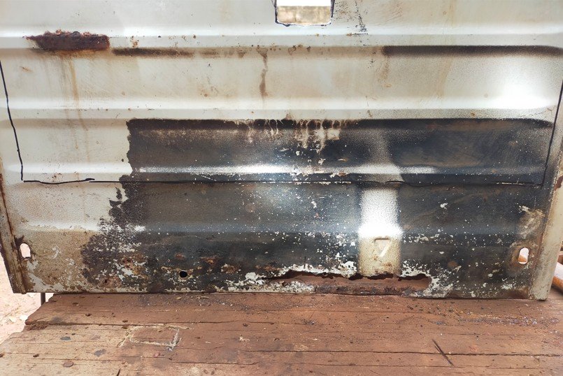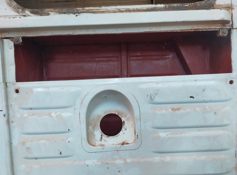 J'ai dégagé le font de coffre coté gauche. toute l'intersection entre le plancher intérieur et la parois verticale est bien pourri.