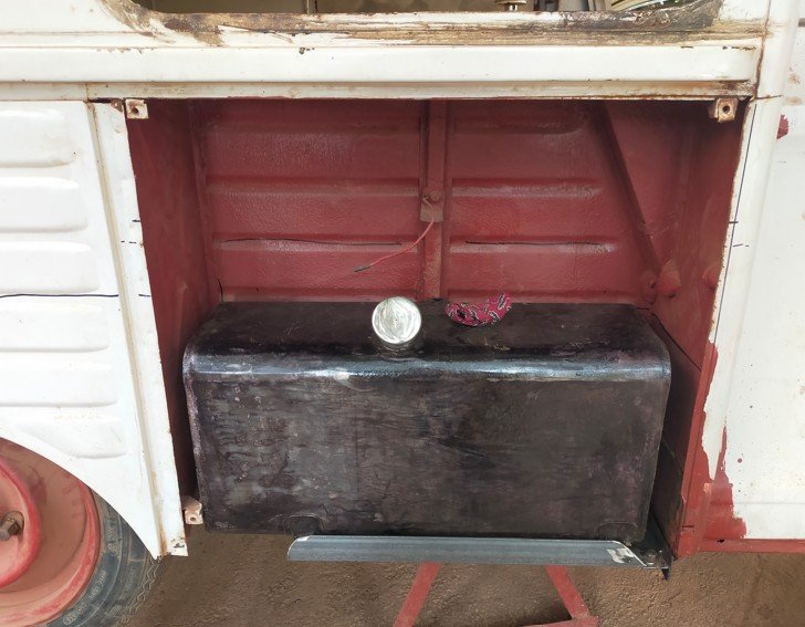 réservoir en place. porte de coffre ouverte (pour pouvoir faire le plein)