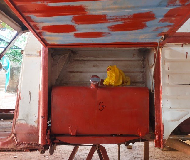 une cornière amovible sera fixé sur le réservoir. et elle même fixé avec 2 boulons sur les supports soudé au châssis