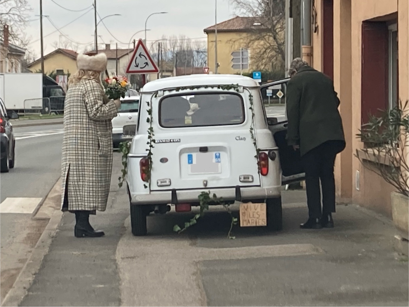 Des jeunes mariés (pas si jeunes :mrgreen: ) en 4 L croisés à Anse.