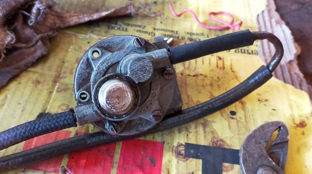 Remplissage d'huile de la boite, du crabot, et du moteur: Puis mise en route sans problème, si ce n'est une grosse fuite à la pompe à essence: j'ai donc démonté la pompe, et c'est les vis de fermetures qui était desserrées.
