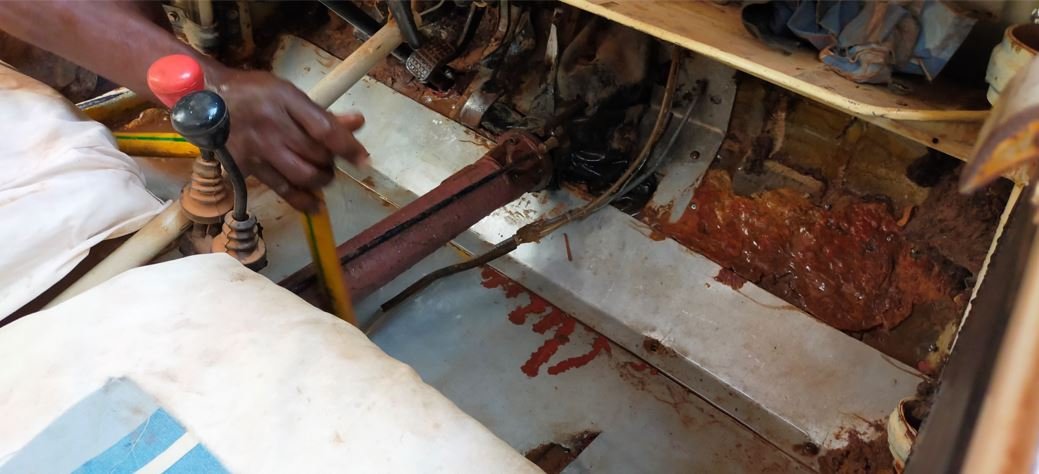 Ce matin, pose du moteur, branchement du pot d'échappement sous boite. (bien galère, à dérouiller les boulons.
