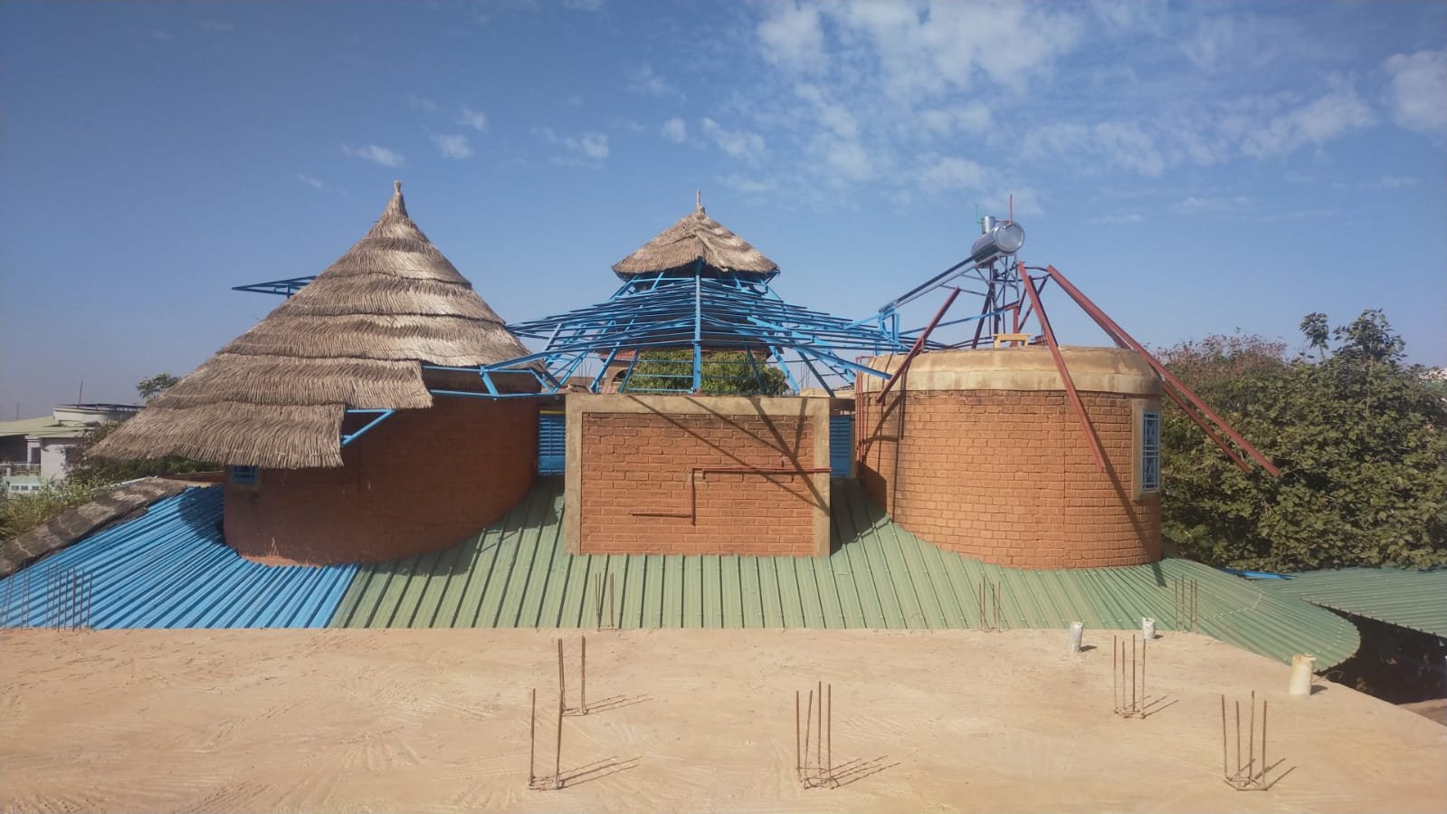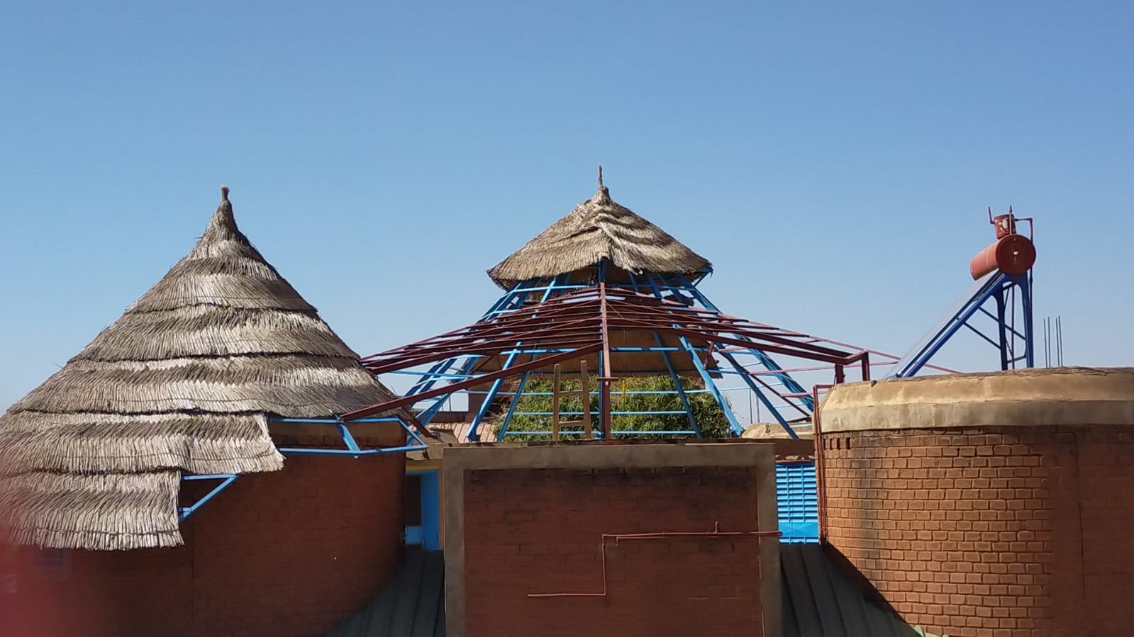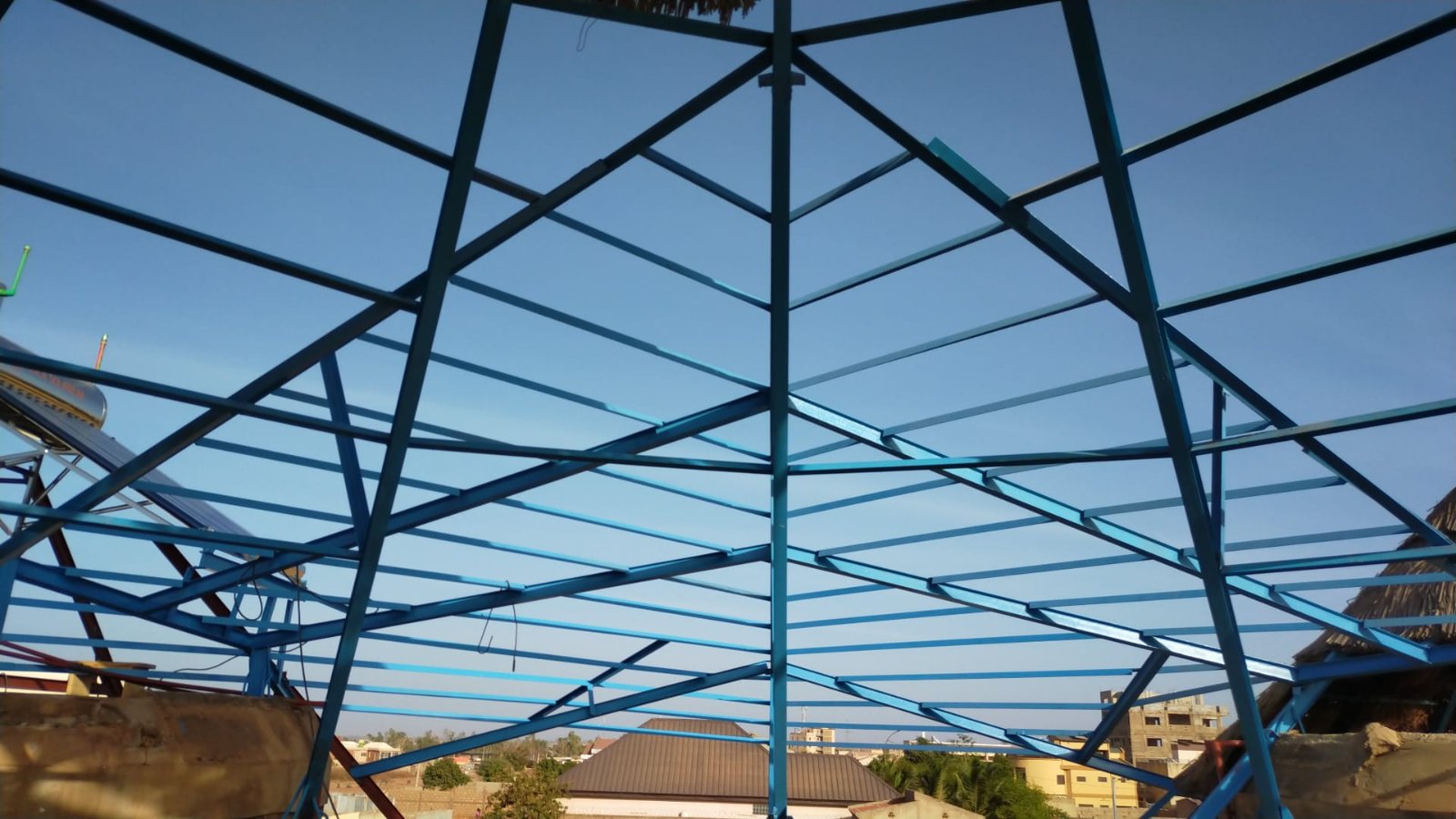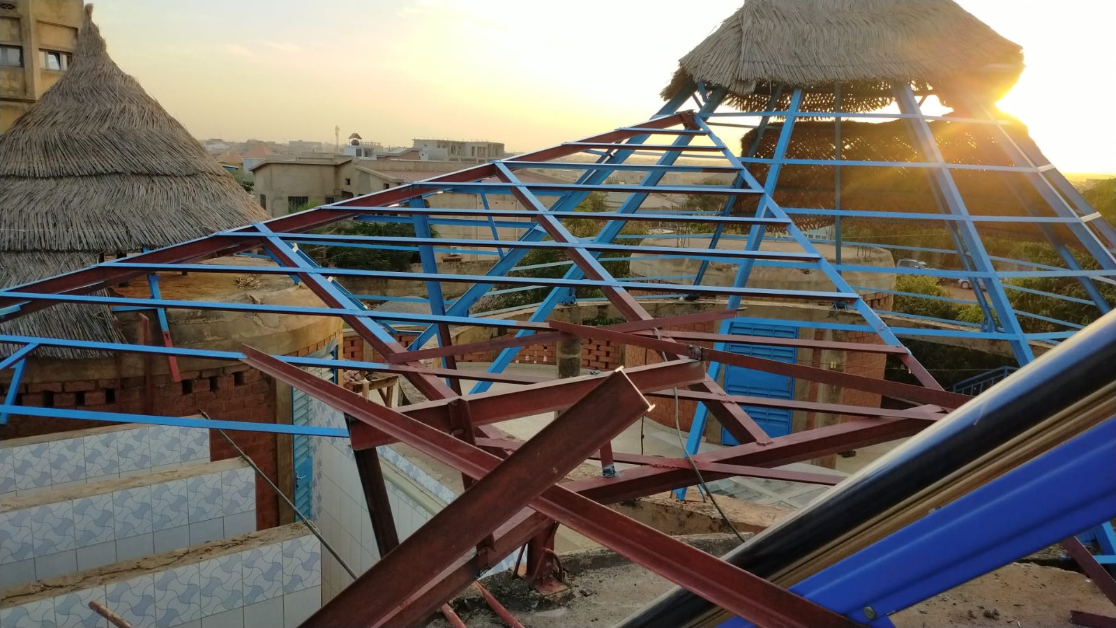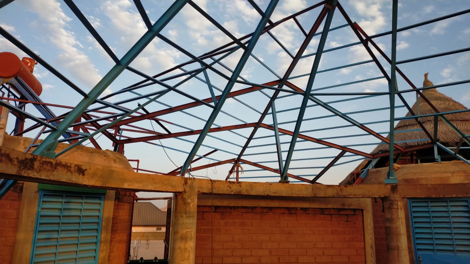Avancement du travail sur la charpente métallique au dessus des toilettes: