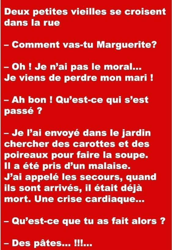 Une dame avec un voile noir sort de l'église et voie une autre dame avec un voile et lui dit : "vous aussi vous êtes veuve" ? et l'autre de lui répondre: non je suis laide !!!