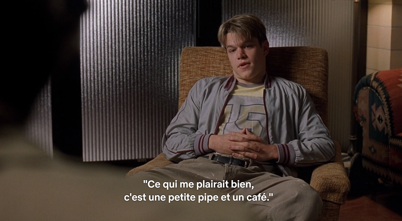 Il s'agit du film Will Hunting avec Matt Damon et Robin Williams, ce passe ce situe vers la 55' minutes et est même répétée un peu plus tard dans le film