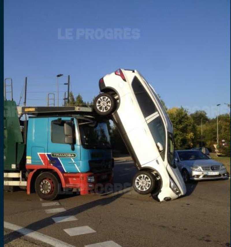 Bon déjà il y a du boulot pour les carrossiers auto, reste à savoir comment ils ont enlevé la voiture sans défoncer le camion, sinon itou pour les carrossiers poids-lourds ! Faut bien que tout le monde bosse !