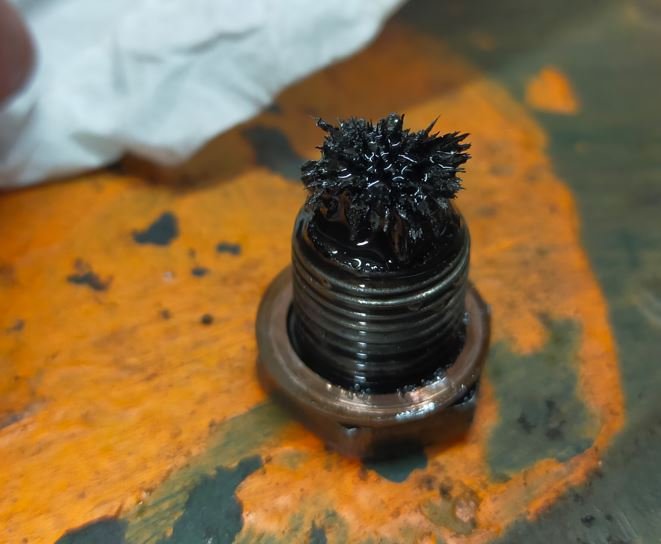 par contre beaucoup de limaille sur l'aimant du bouchon. (c'est probablement le résultat de mes pignons de première qui sont très usés.