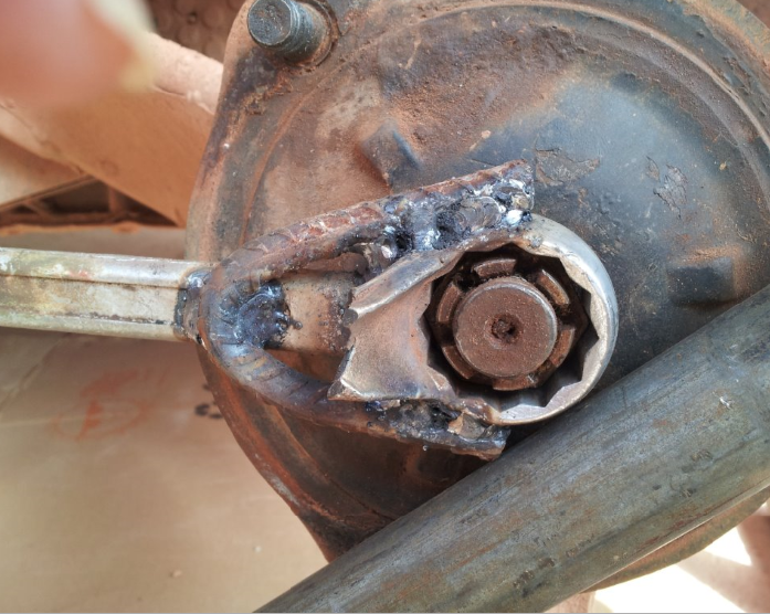 lors de desserage du cardant gauche, c'est la clef qui casse.... mais pas de problème, le soudeur est là: