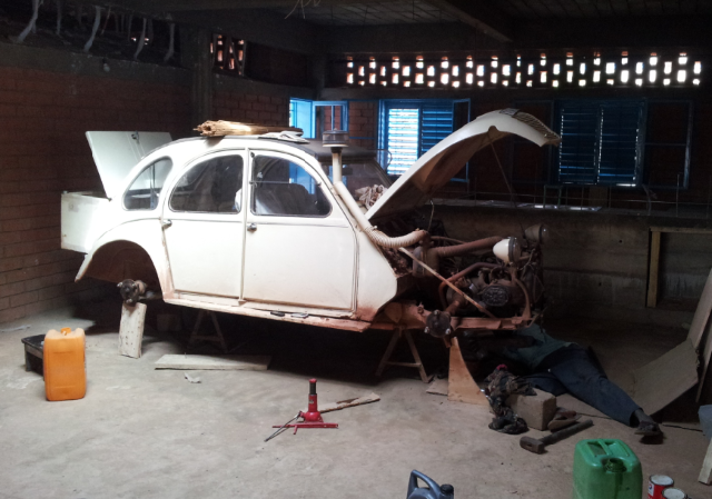 Après le changement de bras droit, la 2CV était prête pour les travaux de la maison et le voyage que nous avons fait à Bobo:
