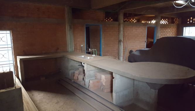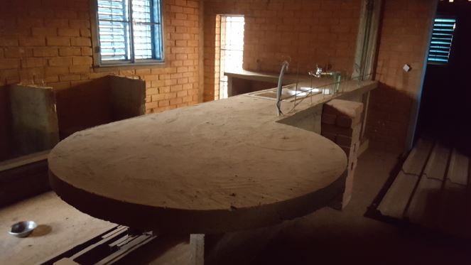 Pour la cuisine, le plan de travail est coulé.... il y a encore du boulot