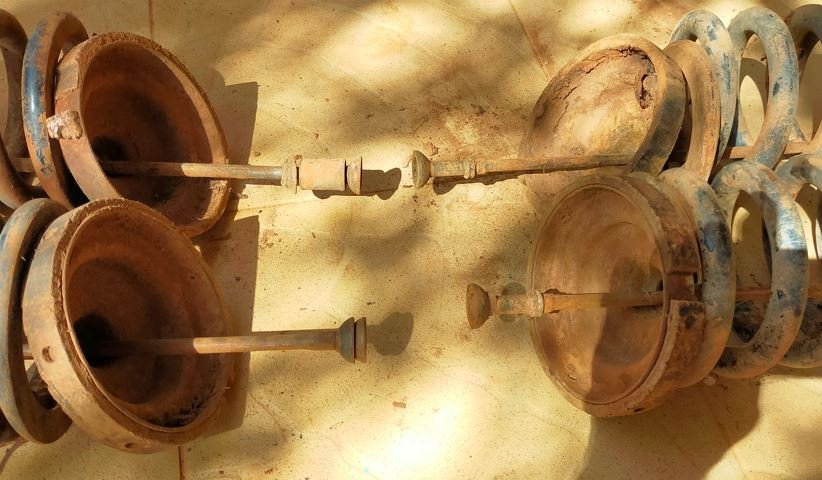 les pots étant ouverts, on peut sortir les ressort sans démontage des l'ensemble du châssis.
