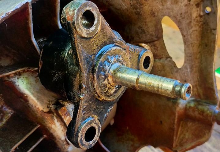 Après un bon nettoyage, je vais repousser les roulement et pouvoir remonter la cloche sur laquelle sera fixé le flector qui était manquant.
