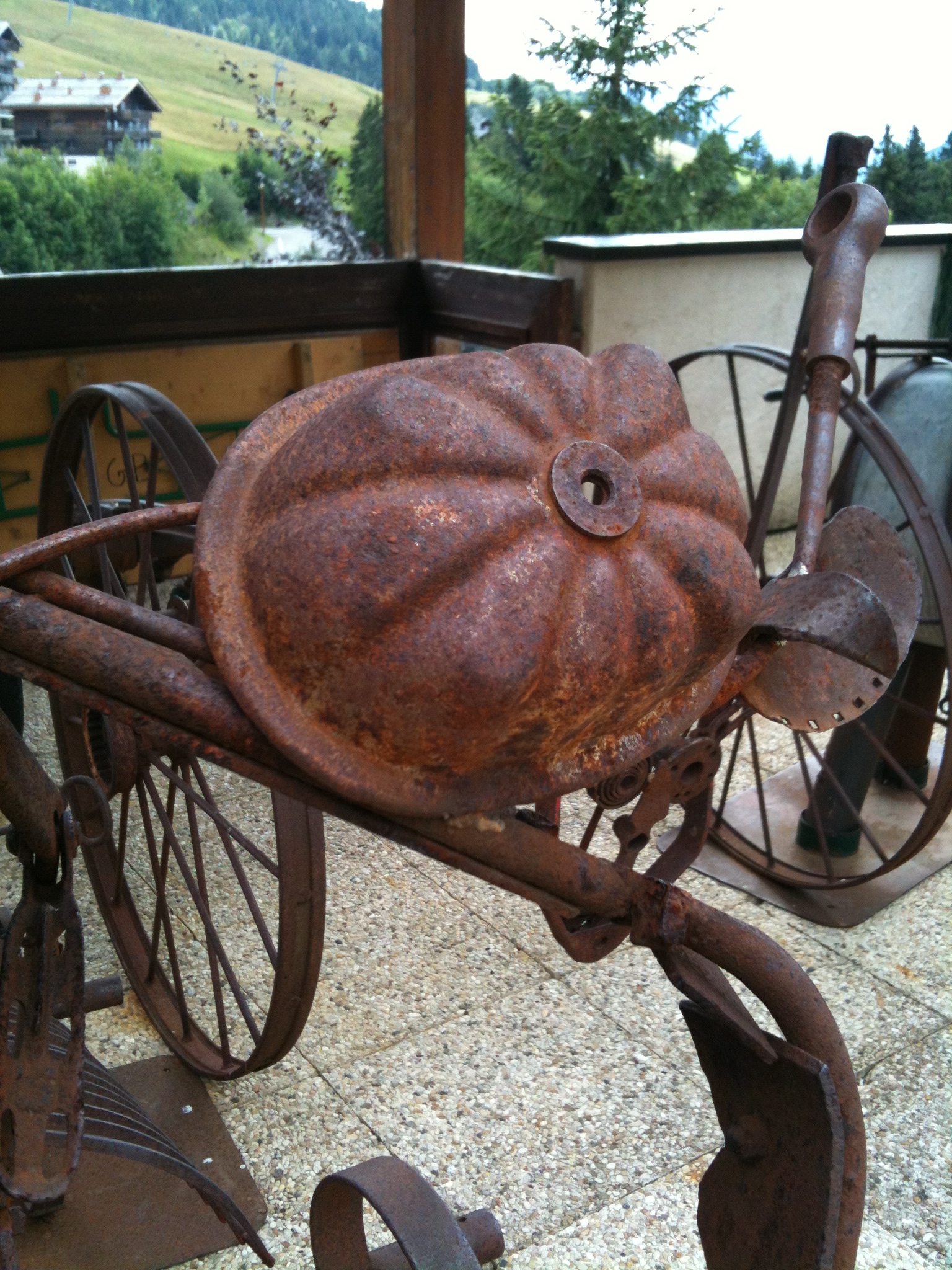 Pour la petite histoire, le Grand Bo est la capitale de l' "Art Vache" : on y trouve des représentations de vaches de toutes sortes, en peinture, en sculpture, en composition diverses... comme ici avec diverses pièces métalliques et mécaniques.