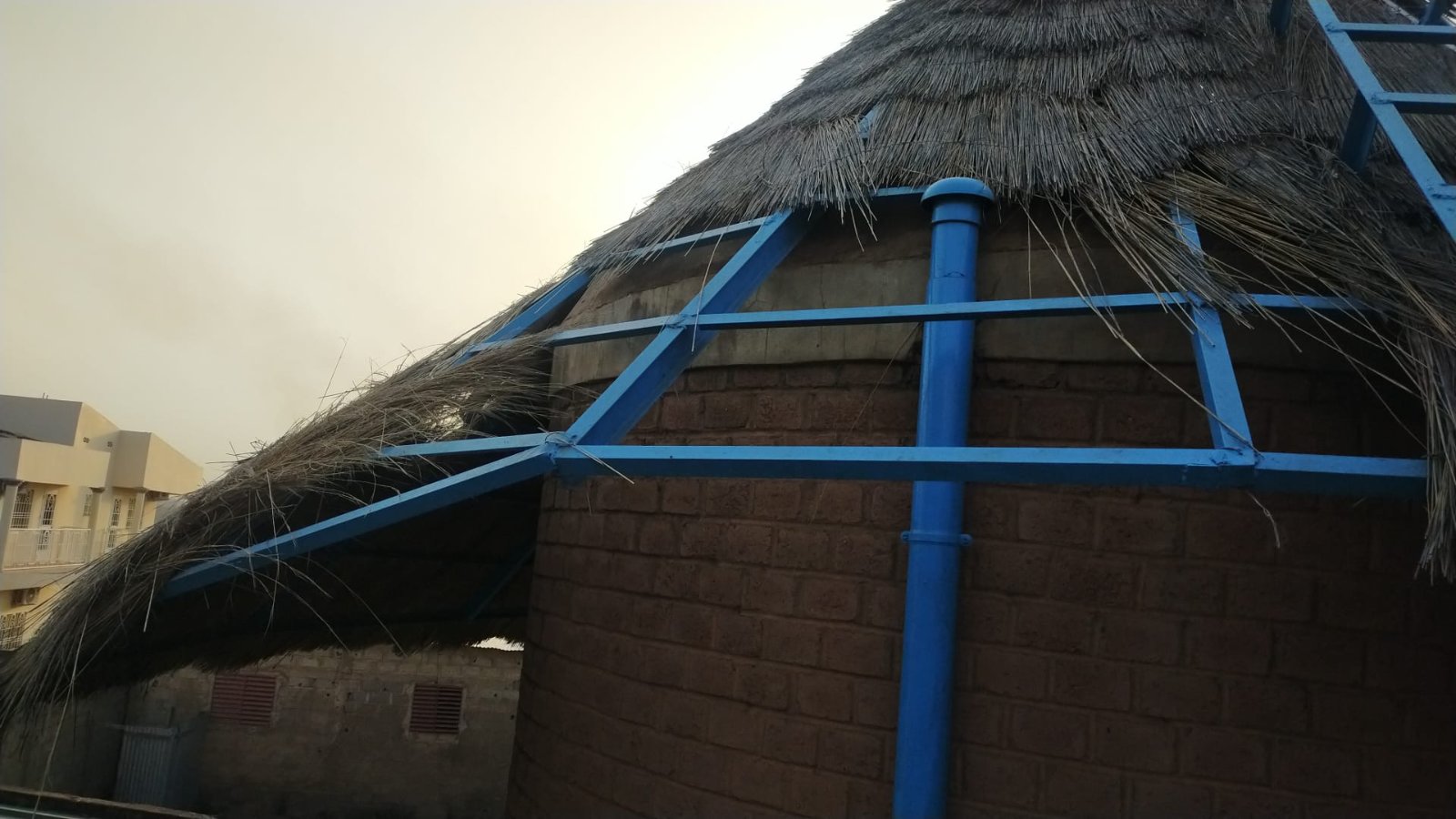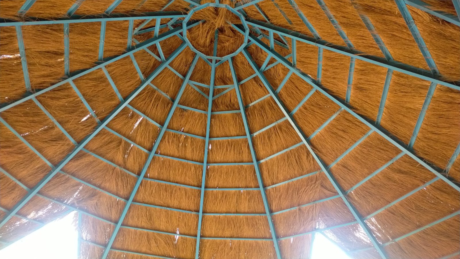 La paillote à globalement bien résisté à la saison des pluies. le dessous de la paille n'est pas sombre, donc l'eau n'est pas trop passé à travers