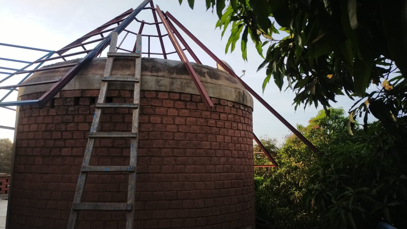 Photo prise de la maison du voisin ce soir: Les paillottes des cases de gauche reste à finir.