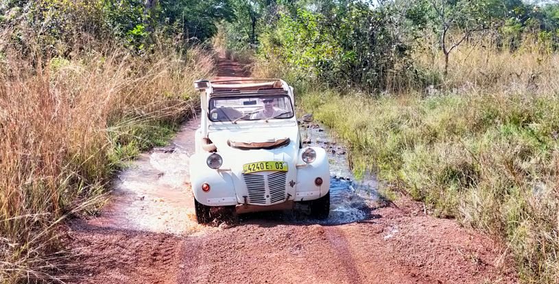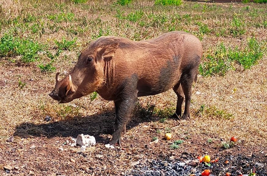 un phacochère qui était plus préoccupé par manger que par ma voiture