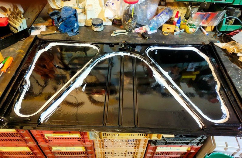 Voici la porte cette fois avec le joint / colle sur le contour des renforts.