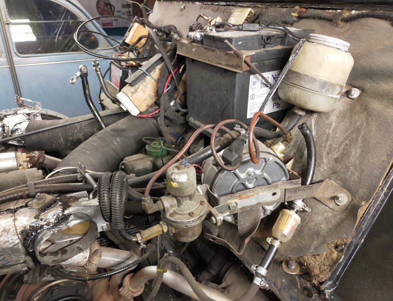 L'étape de cet après midi était de dégager le moteur, c'est vrai que cette voiture à beaucoup de bazar sous le capot