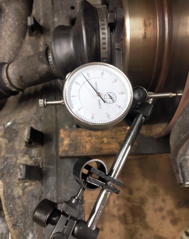 une fois fixé les disques, j'en ai profité pour mesurer le faux rond. j'ai trouvé autour de 0.15 mm pour un maxi à 0.20 mm.
