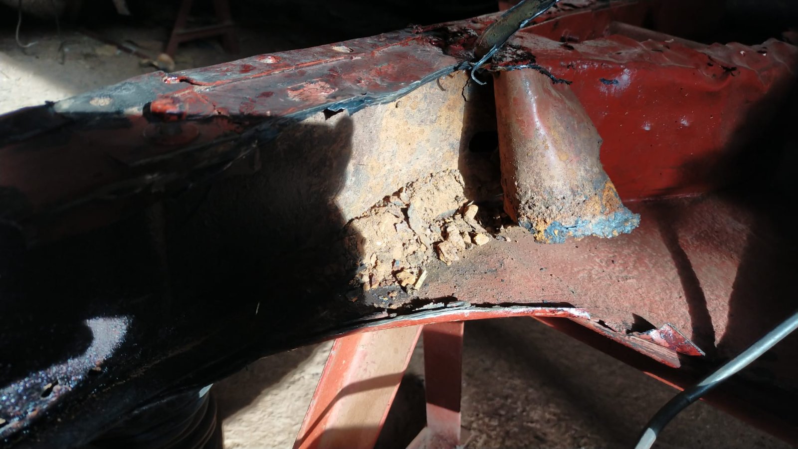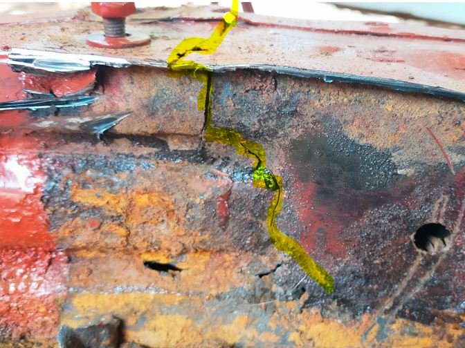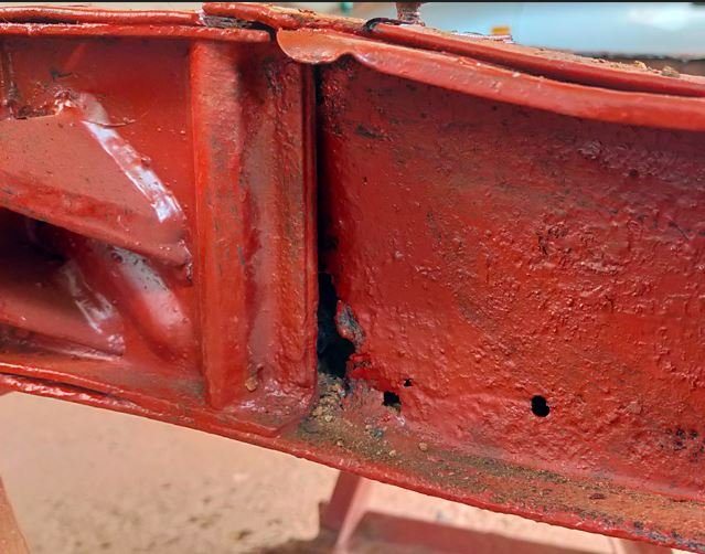 Petite soudure de la fissure pour rigidifier la côté droit