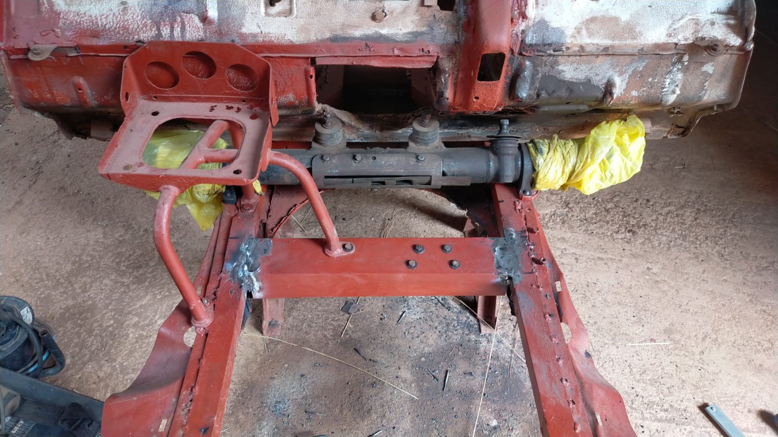 Ce matin, j'ai commencé par peser le châssis avant d'enlever les tôles pourries.