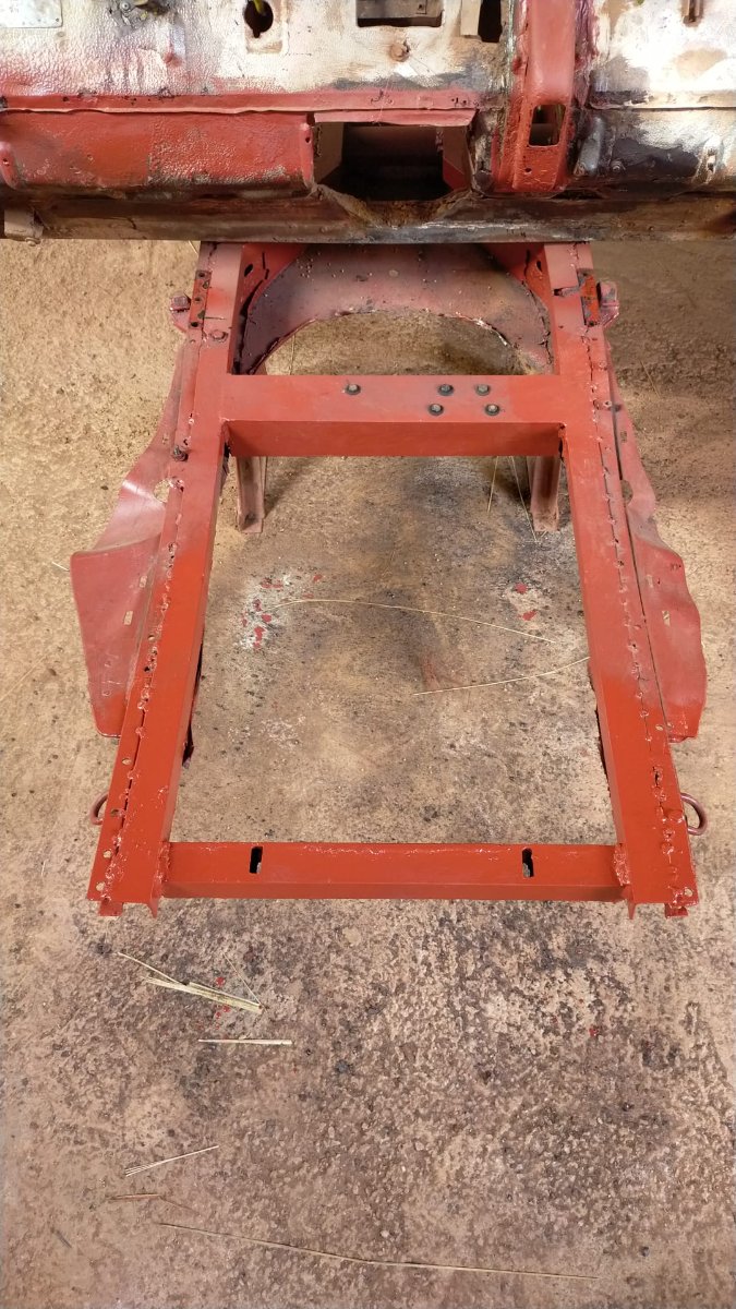 Ce matin, mis en place de la traverse "sous" boite, avec le support de batterie en place, pour bien valider la position.