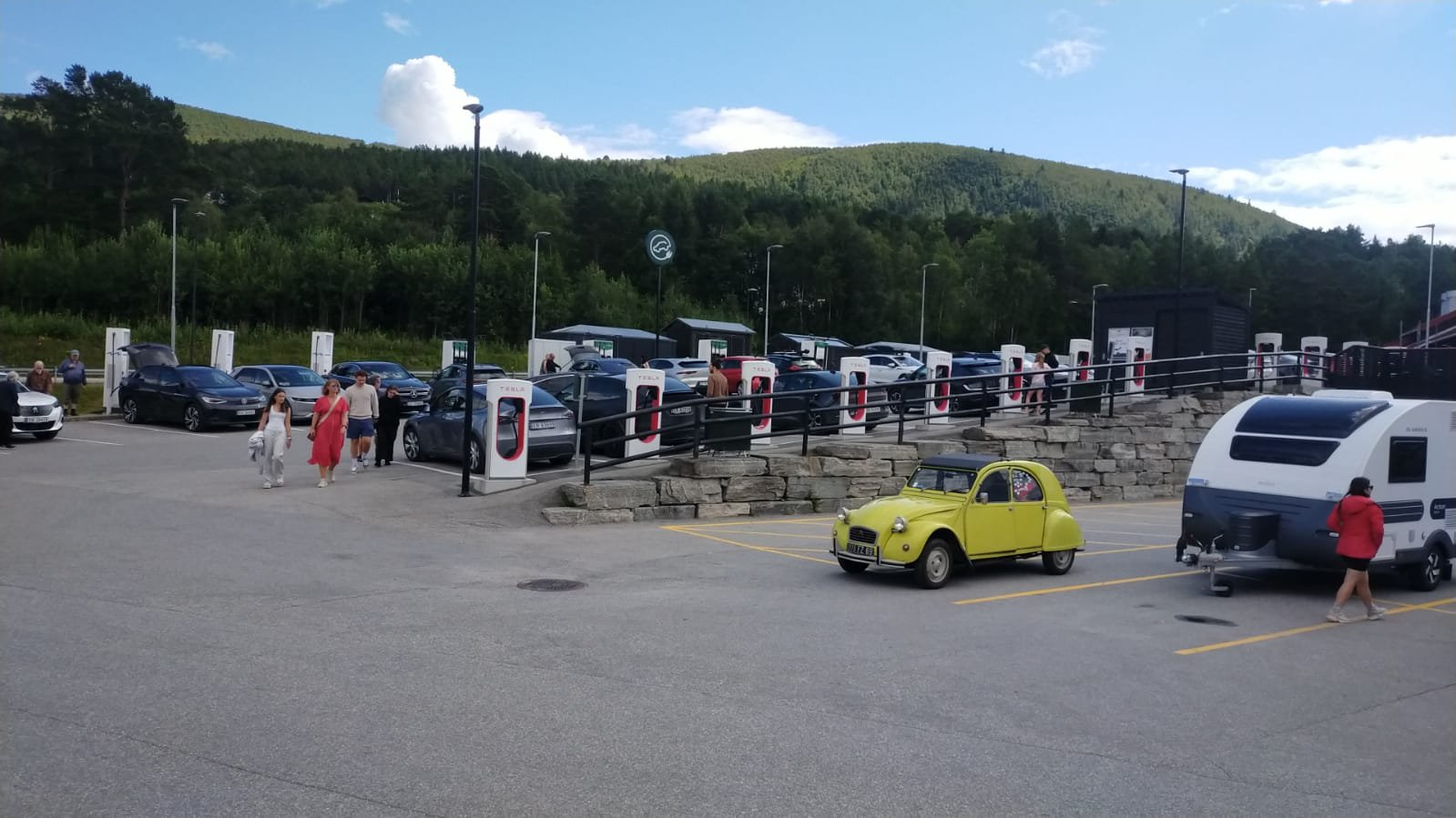 Avant d'attaquer le col, les Tesla font le plein.... En Norvège, plus de la moitié des véhicules neufs sont 100% électriques