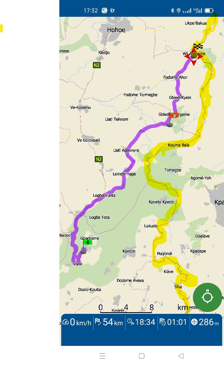 Aujourd'hui l'objectif n'était pas d'atteindre de nouveau sommets, mais passage de la frontière avec le TOGO par la montage.